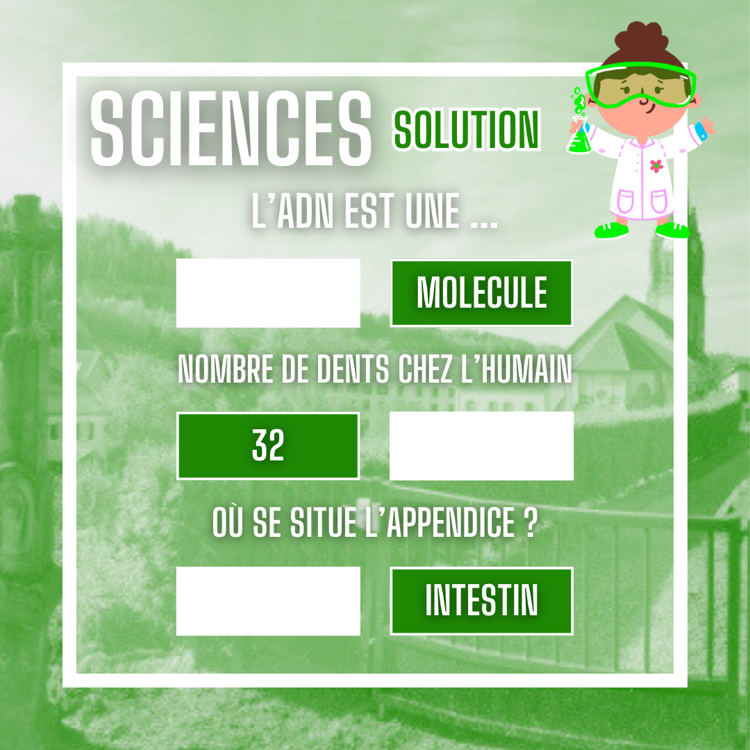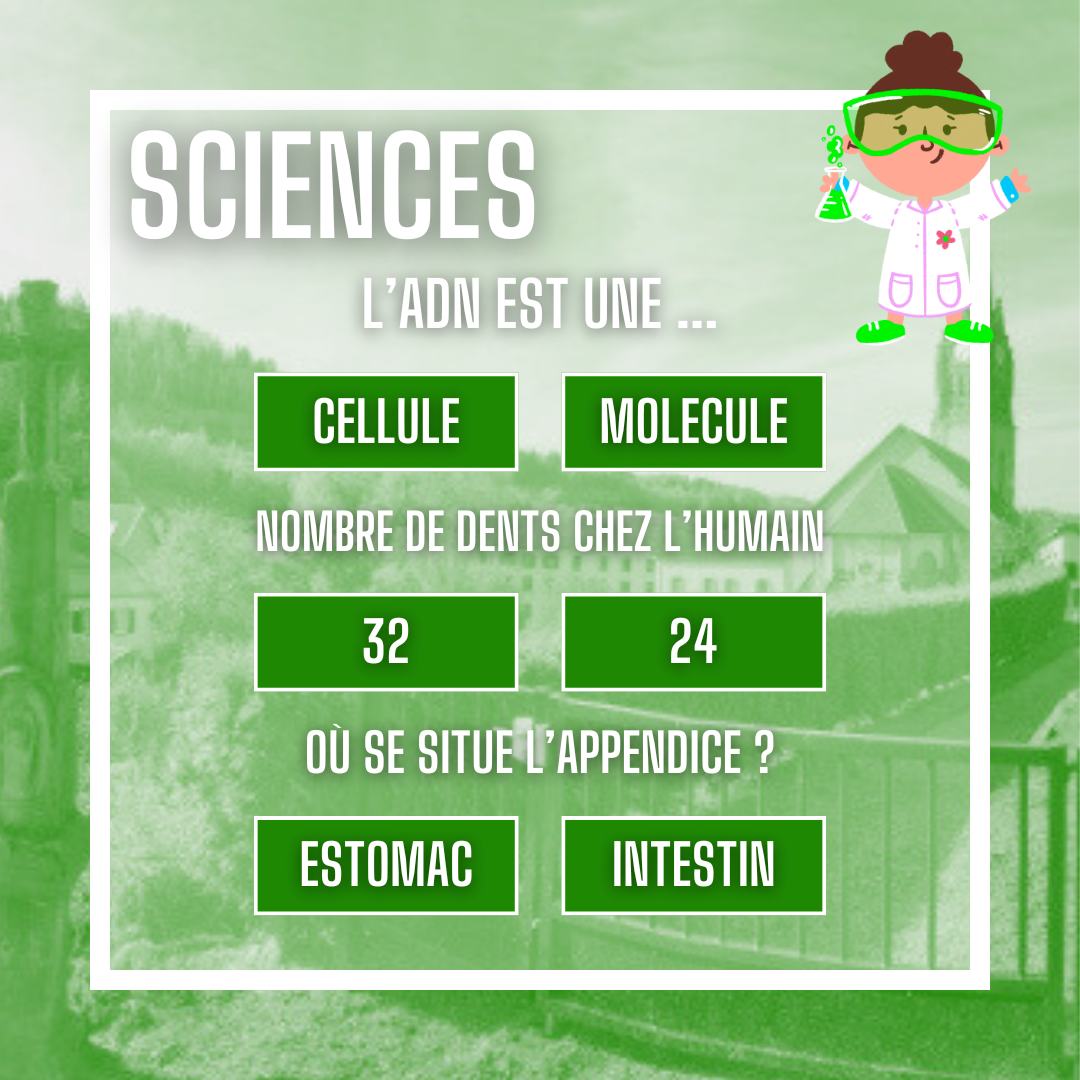 Pour cette 4ème partie du cahier de vacances, après l’Histoire, voici l’ »histoire du vivant » : les Sciences ! Voici un petit quizz de sciences pour tester vos connaissances !
