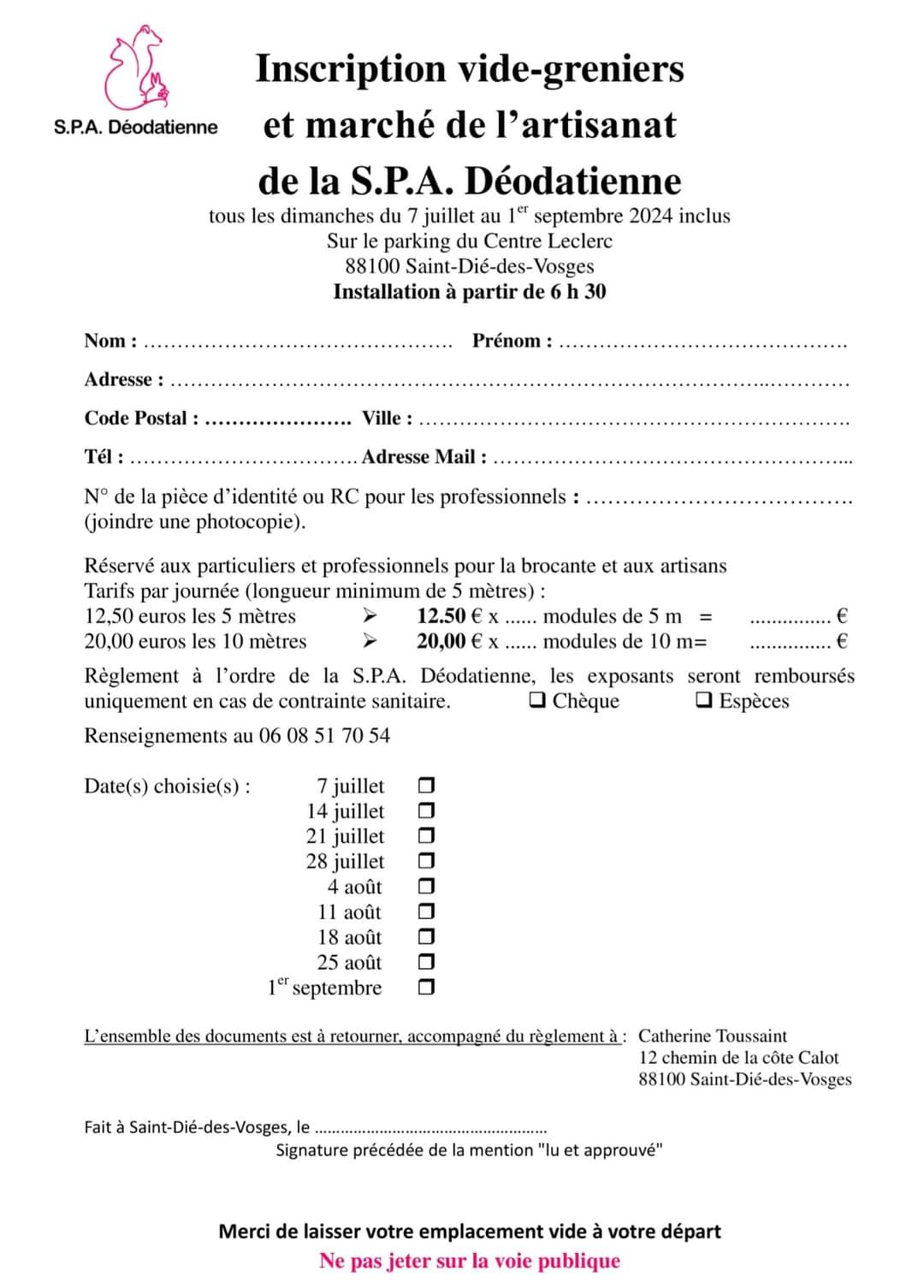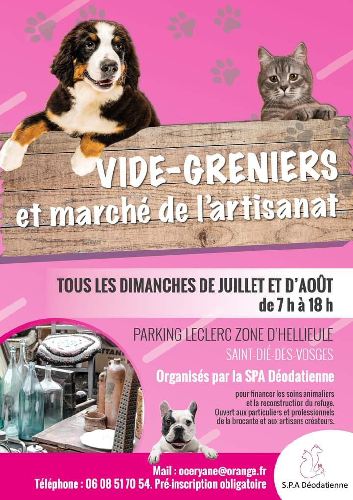Véritables événements de l’été, les vides-greniers et marchés de l’artisanat de la SPA Déodatienne ont rythmé tous les dimanches de Juillet et d’Août 2024, sur le parking du E. Leclerc de la zone Hellieule 2 ! Dernière date demain !