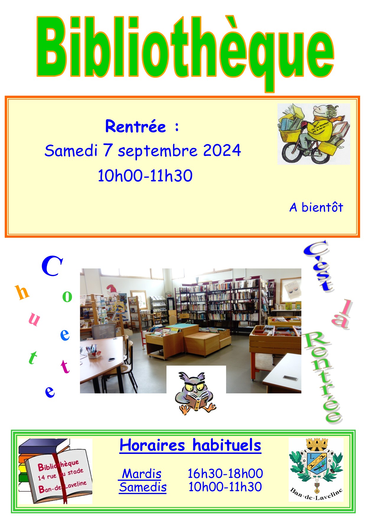 La rentrée est là ! Les écoliers sont retournés sur les bancs de l’école ! Mais c’est également la rentrée pour la Bibliothèque à Ban-de-Laveline ce samedi 7 Septembre 2024 dès 10h00 !