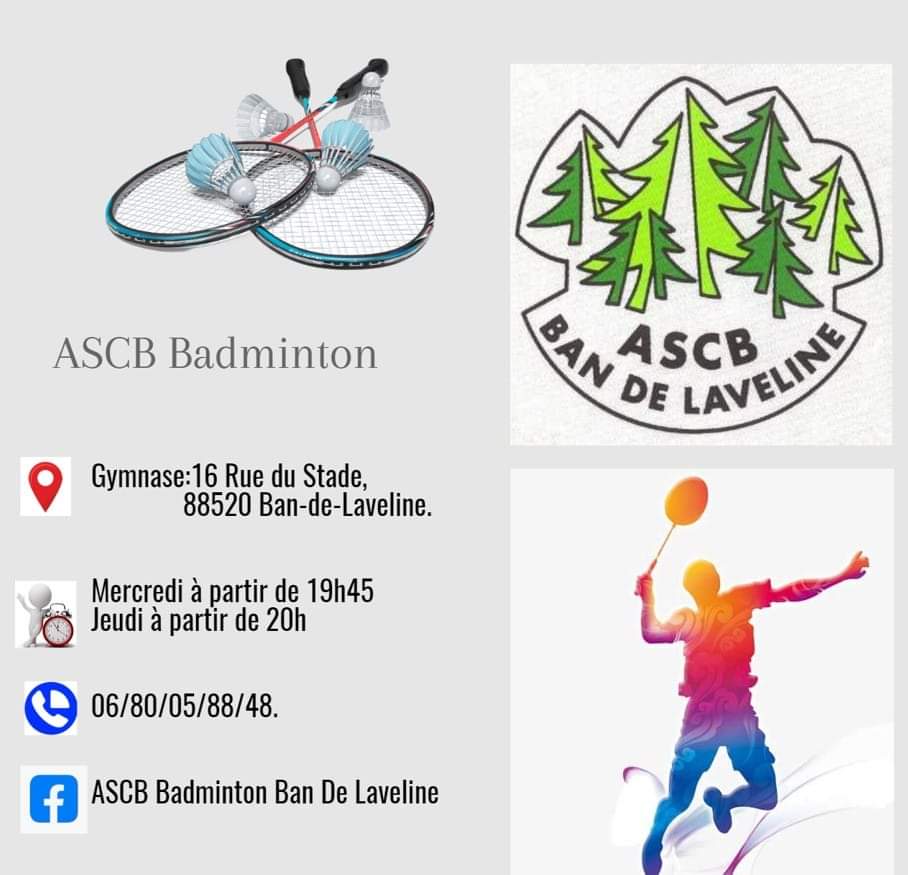 C’est la rentrée pour les badistes de l’ASCB Badminton ! Pour les enfants, rendez-vous ce mercredi 11 Septembre de 18h10 à 19h40 à la Salle des Sports de Ban-de-Laveline.