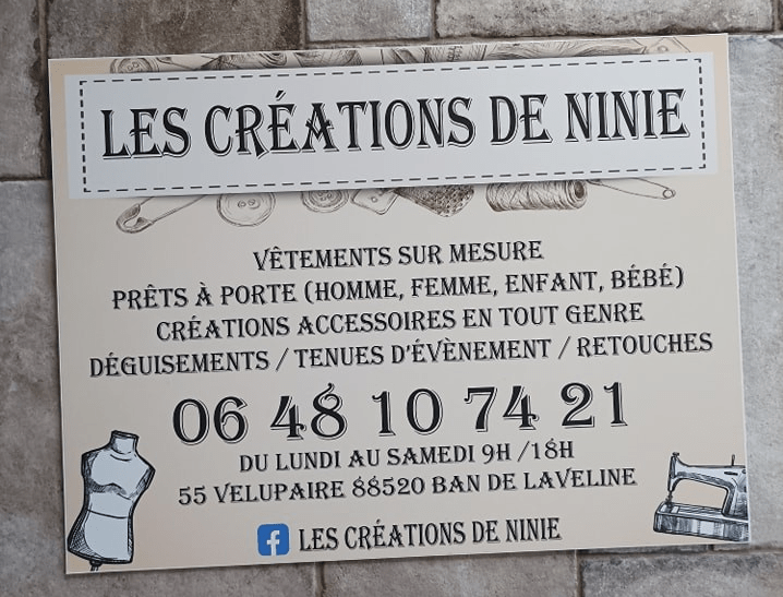 Après une longue période de réflexions, son atelier, Les Créations de Ninie voit le jour au domicile familial à Velupaire : il est équipé de tout le nécessaire pour créer des pièces sur mesure pour homme, femme, enfants et bébé.