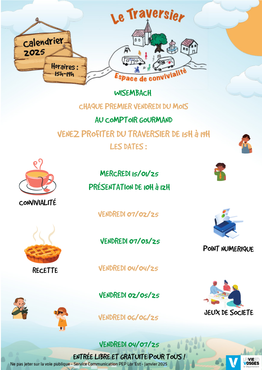 Au vue des transformations sociétales récentes et de la raréfaction des lieux du vivre-ensemble, l’équipe du Traversier se déplace dans l’est vosgien pour offrir un lieu de rencontre et d’échanges à tous ! Un vrai espace de vie mobile pour être présent directement sur nos communes rurales.