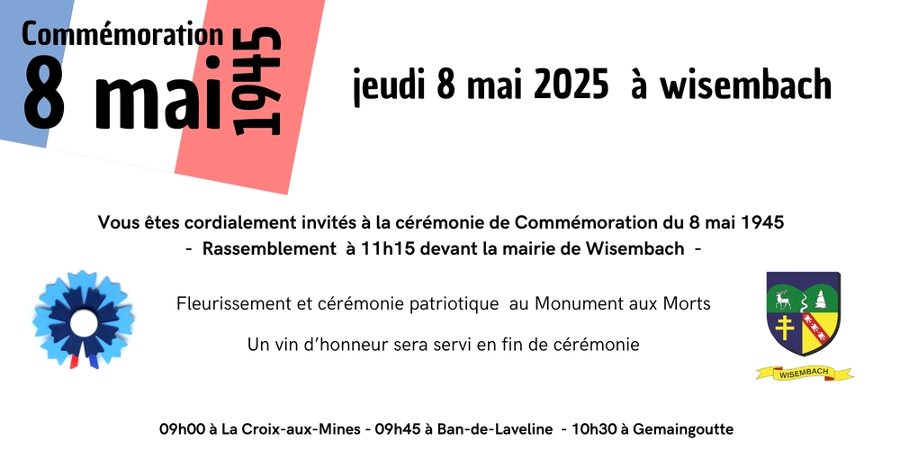 Comme chaque année, les célébrations de l’Armistice du 8 Mai 1945 sera ouverte de nouveau à tout·es à Wisembach ! Demandez le programme !