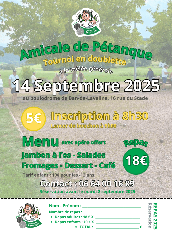L’ASCB Amicale de Pétanque organise sa dernière date des Amicales de Pétanque pour la saison 2025 le dimanche 14 Septembre ! Un repas pour les joueurs et non joueurs est également proposé pour l’occasion !