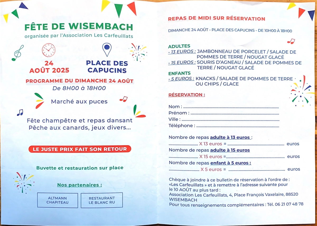 Le comité des fêtes de Wisembach Les Carfeuillats a annoncé que la fête au village aura lieu demain 24 Août 2025 ! Prêt pour faire la fête tout un week-end sur la place des Capucins ?