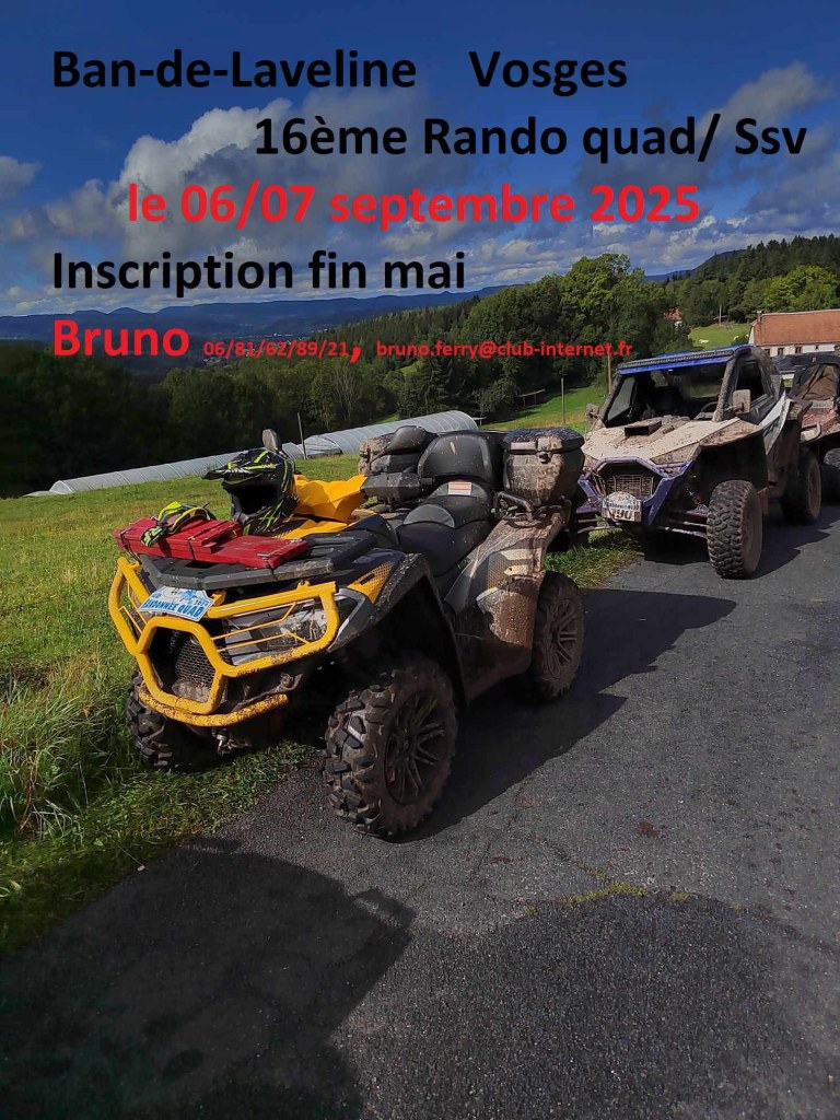 Les amateurs de sensations tout-terrain ont rendez-vous à Ban-de-Laveline pour la 16ème édition de la Rando Quad & SSV, organisée les 6 et 7 Septembre 2025 par l’ASCB Bûre.