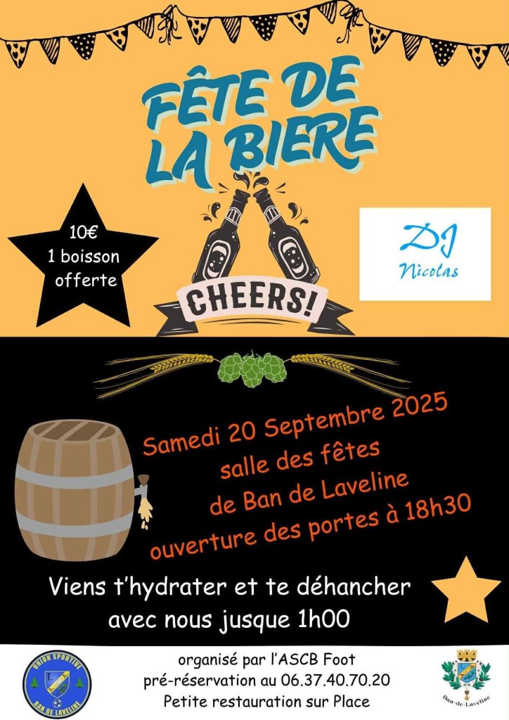 La salle des fêtes de Ban-de-Laveline s’apprête à vibrer au rythme de la convivialité ! Demain, samedi 20 Septembre 2025, l’ASCB Foot organise sa 1ère Fête de la Bière : un rendez-vous attendu qui alliera musique, danse et bonne humeur !