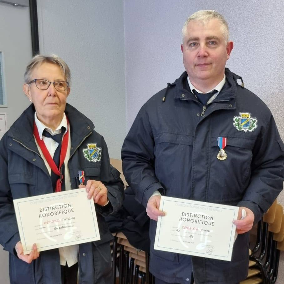À l’issue de la cérémonie, avant de partager le traditionnel repas de Sainte-Cécile, les musiciens se sont retrouvés pour distinguer trois figures majeures de l’harmonie : Christiane Gérard avec la médaille d’honneur vétéran, Fabien Cosyns avec la médaille d’or (40 ans de fidélité musicale) et Claude Mairerichard, véritable mémoire vivante de l’harmonie, honoré pour son 90e anniversaire et ses 75 années de pratique musicale.