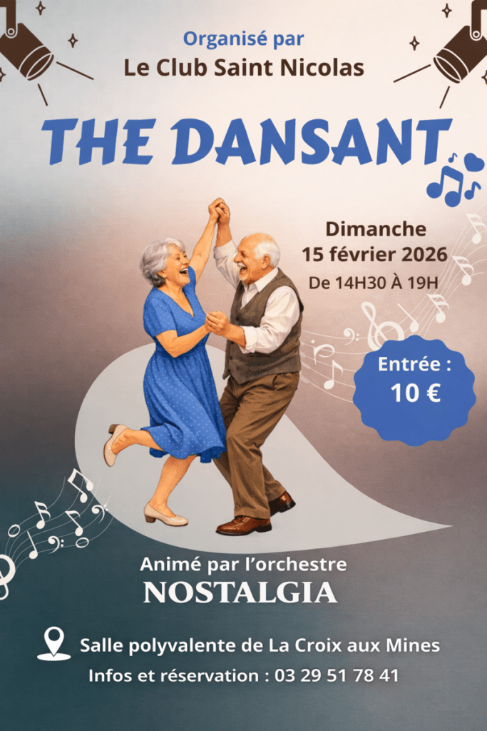 Le dimanche 15 Février 2026, la salle polyvalente de La Croix-aux-Mines se transformera en piste de danse géante. Le Club Saint Nicolas invite tous les amateurs à son thé dansant dès 14h30 : un rendez-vous incontournable pour briser la monotonie hivernale !